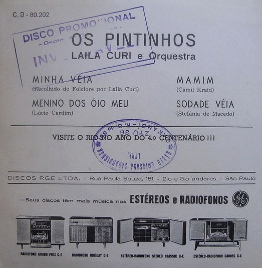 Radiolandia says: Laila Curi has appeared already as a major star! Laila was probably one of the first singers who shot to stardom relying on television as a new medium. This was something completely new for a country that had a few thousand TV sets yet.Radiolandia kept on praising the sudden stardom of Laila Curi. Columnist Mauro Pires chronicles Laila's recording career: her first single was 'Mamim', sung in Arabic b/w 'Sodade véia', a Brazilian folk tune. In July 1958, RGE released Laila's first album.